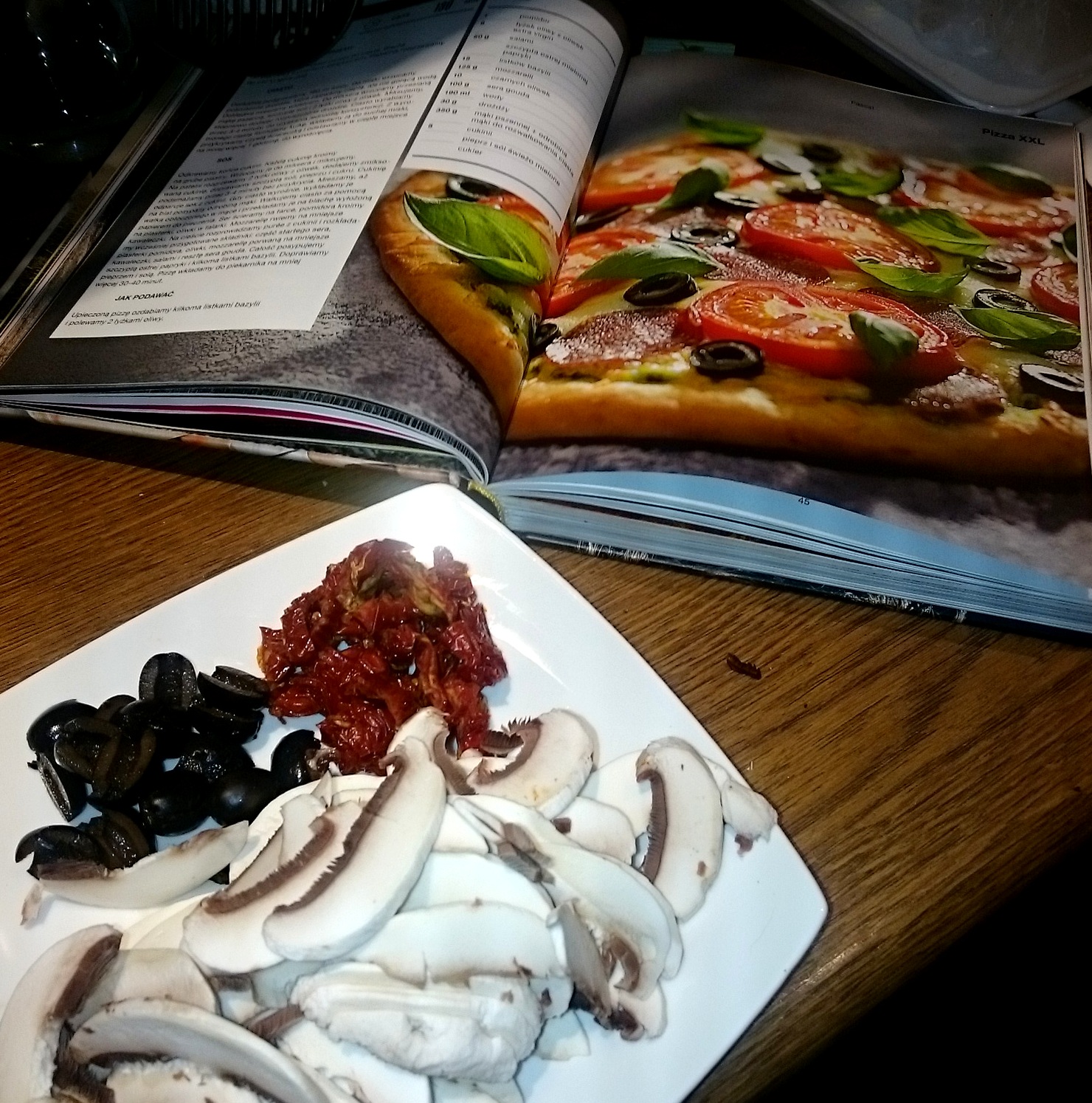 Pizzę wkładamy do piekarnika nagrzanego do 210 stopni C (góra-dół)