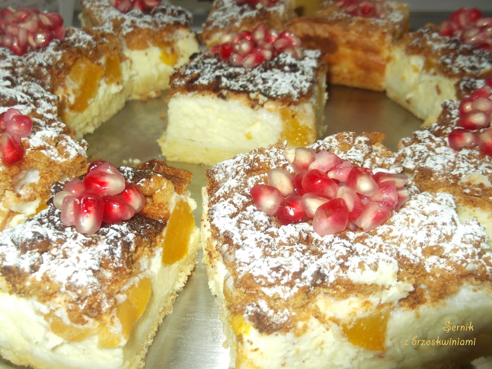 Po upieczeniu i ostudzeniu ciasto można posypać owocem granatu, dzięki temu smak sernika będzie słodko - kwaśny.