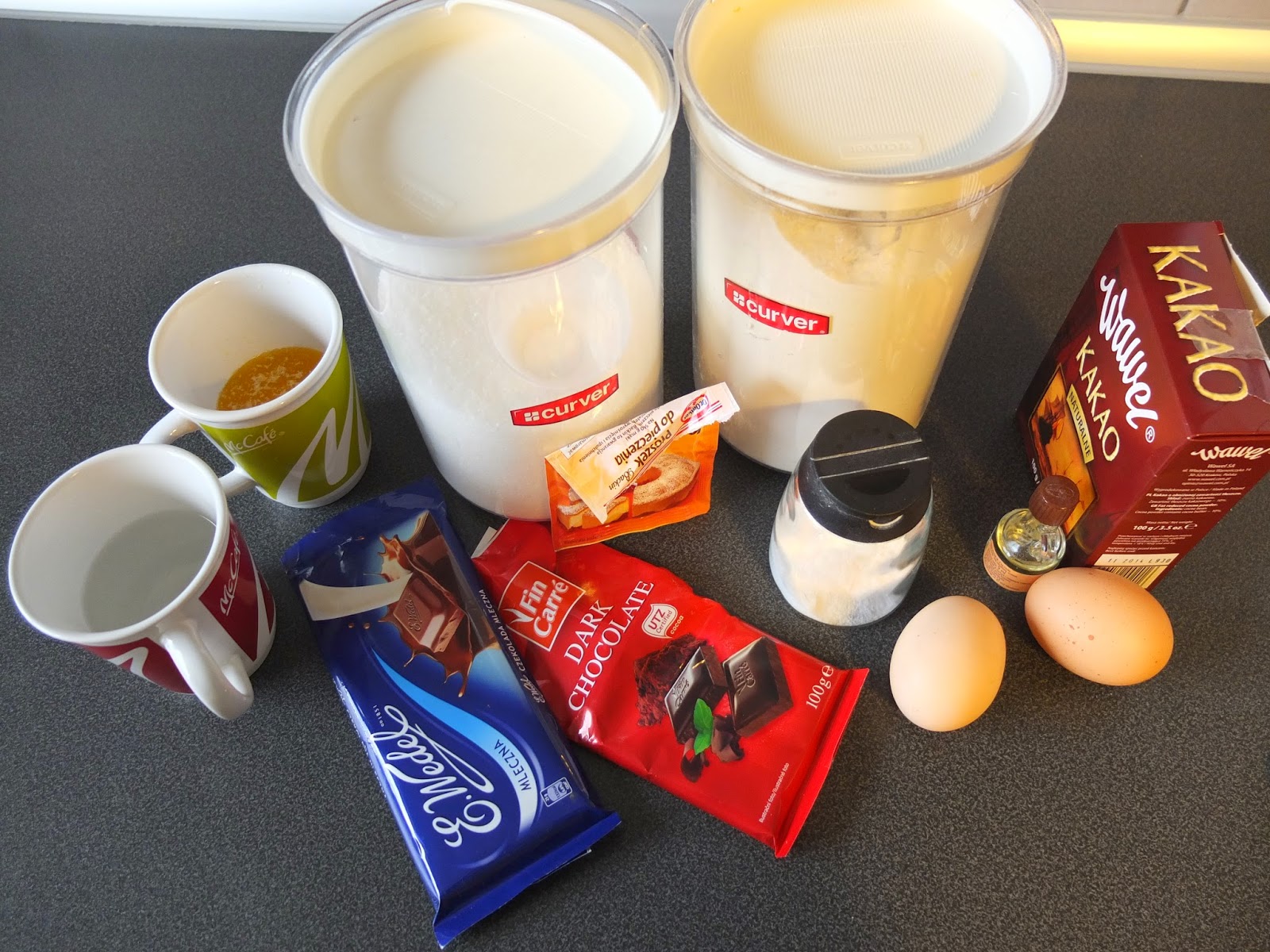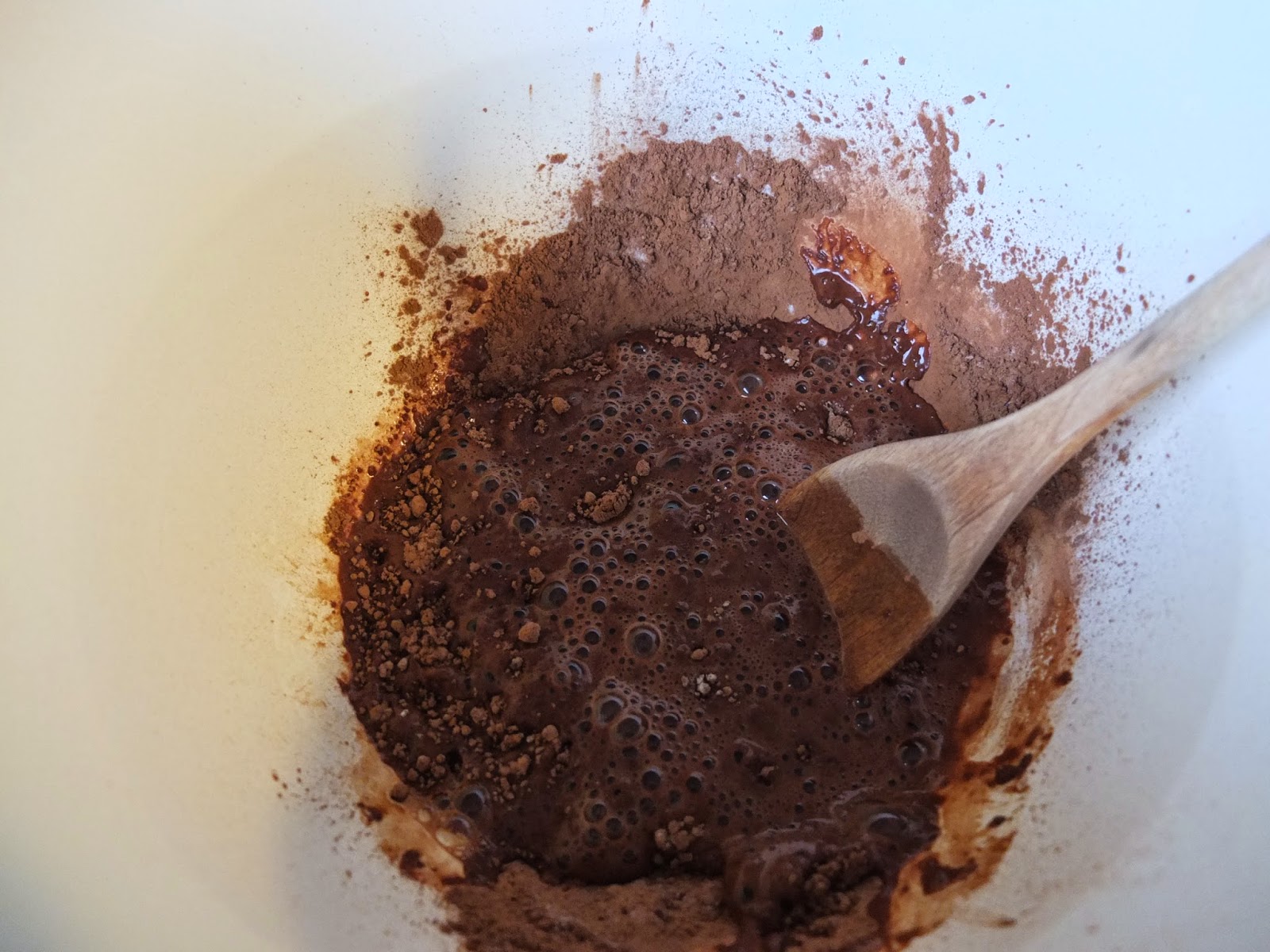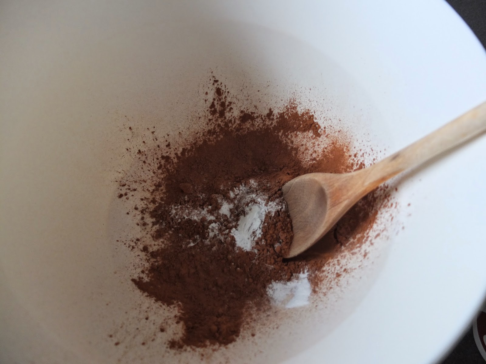 1. W dużej misce mieszamy kakao i proszek do pieczenia