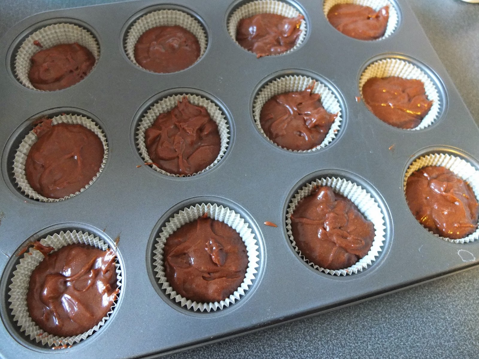 10. Do foremek na muffinki wlewamy ciasto - tak do ok 3/4 foremki
