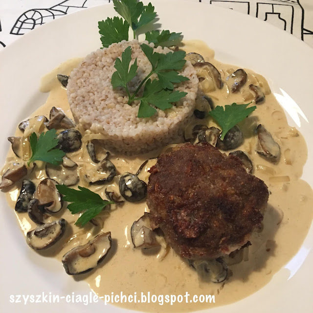 Ja moje dzisiejsze mielone podałam z kaszą i sosem z podgrzybków. Choć mamy połowę lipca, to w niektórych lasach pojawiły się już grzyby. A że od kilku dni nie przestaje padać właściwie w ogóle, na dodatek jest całkiem ciepło, więc jest duża szansa, że za chwilę grzybów będzie coraz więcej. Jeśli nie uda wam się kupić świeżych grzybów, wykorzystajcie mrożone, które spokojnie można kupić w sklepach (ale najpierw je rozmroźcie).