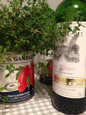 4. Gdy ilość wina zmniejszy się dwukrotnie, wlewamy do garnka bulion, dodajemy świeże zioła, sos Worcestershire, koncentrat, szczyptę soli i pieprzu.