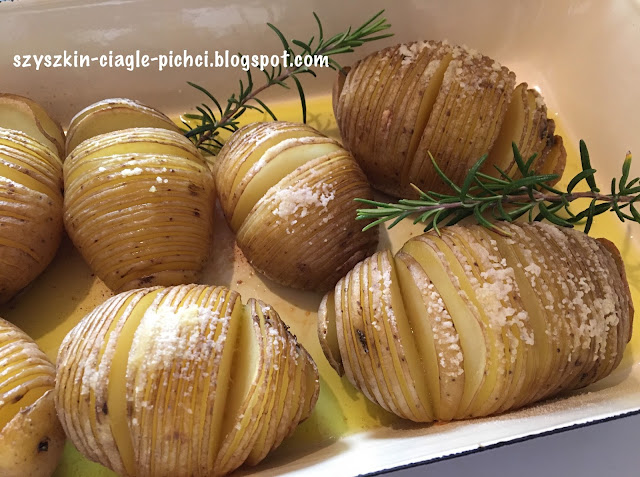 Ziemniaki Hasselback to świetny przykład na to, że naprawdę niewiele potrzeba, by zrobić coś pysznego. Mogą być dodatkiem skrobiowym do obiadu, ale smakują tak dobrze, że są idealną propozycją same w sobie, na kolację lub imprezę. Chyba nie przesadzę, jeśli powiem, ze to obok placków ziemniaczanych, mój ulubiony sposób na przygotowanie ziemniaków. Chrupiące z zewnątrz, mięciutkie w środku. Musicie spróbować!