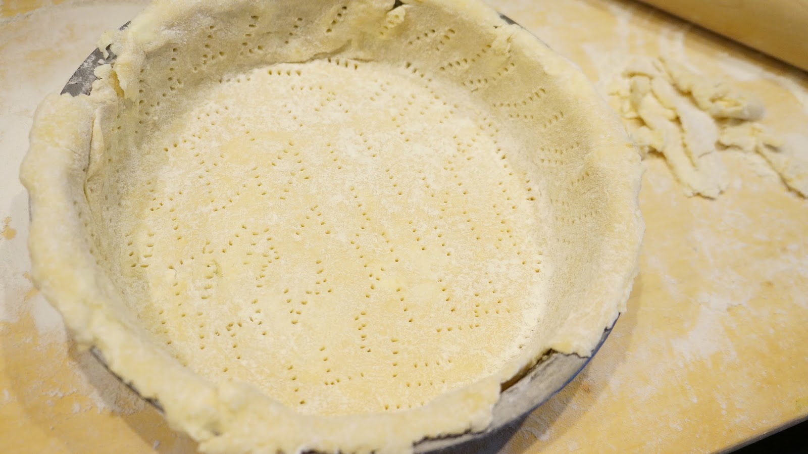 Po tym czasie wyjmujemy je, rozwałkowujemy na placek kilkumilimetrowej grubości (ok 3 - 5 mm), wykładamy na foremkę do tarty, nakłuwamy widelcem.