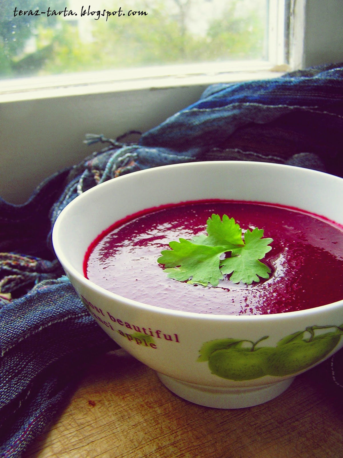 Przestygnięte buraczki odwijam z folii/papieru, obieram, kroję na większe kawałki i wrzucam do bulionu razem z ziemniakami i obranymi ząbkami czosnku, ścieram imbir i dodaję do zupy. Całość miksuję na gładki krem, doprawiam i zagotowuję. Można zabielić śmietaną.