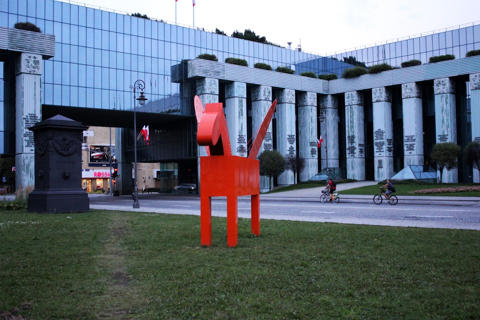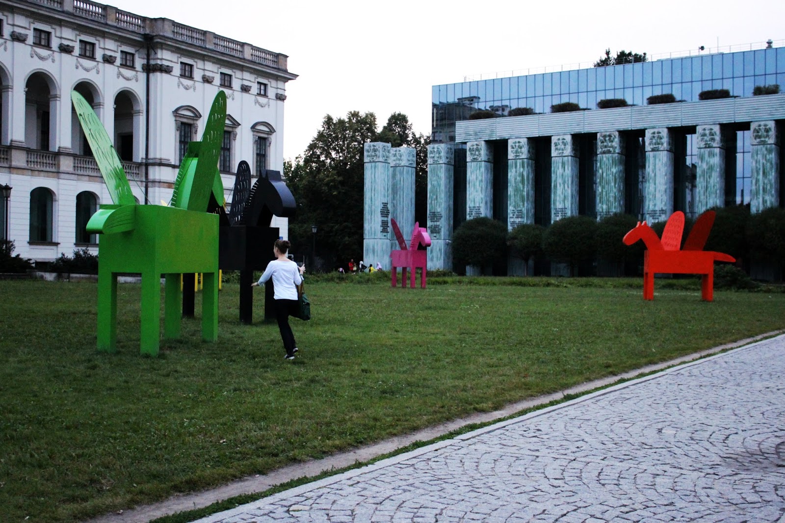 Skrzydlate konie przed budynkiem warszawskiego sądu to dość nietypowy pomysł na ożywienie okolicy.