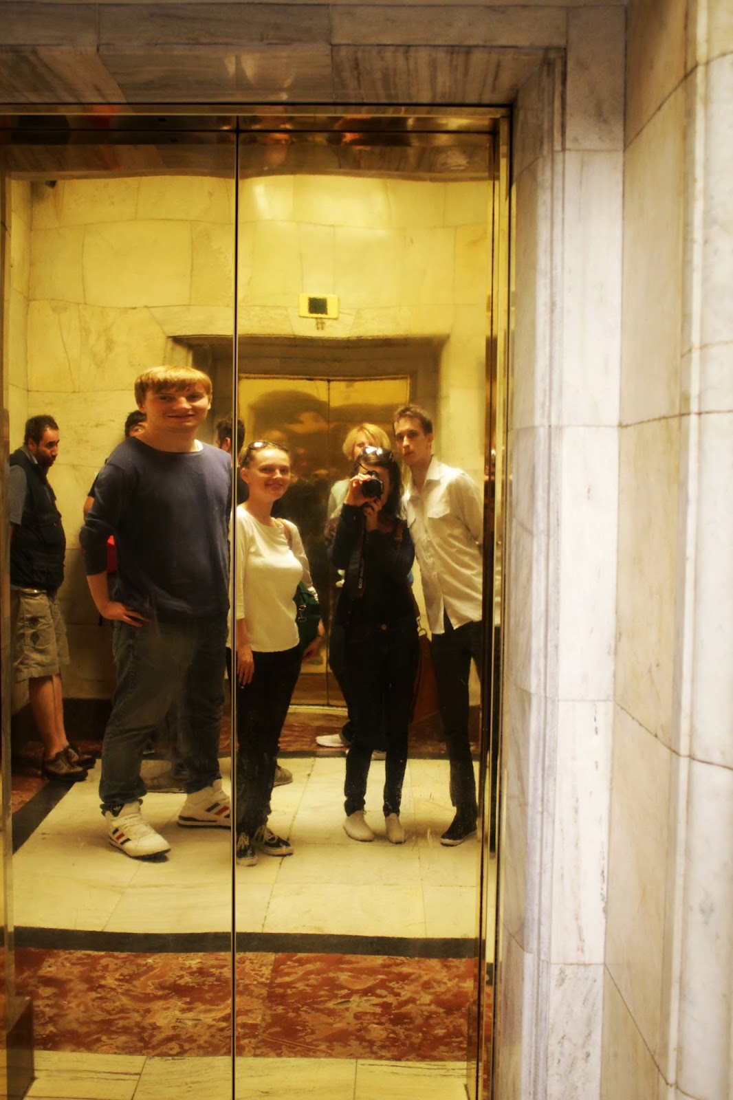 Z pełnymi brzuchami wyruszyliśmy w miasto. A zwiedzanie Warszawy musieliśmy zacząć od Pałacu kultury.