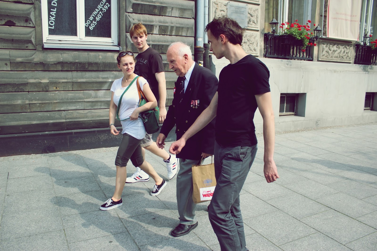 A najwspanialszą rzeczą jaka mogła Nam się przytrafić było spotkanie z Powstańcem, który wolnym krokiem przemierzał tę samą trasę co my i oglądał zdjęcia swoich przyjaciół i towarzyszy.
