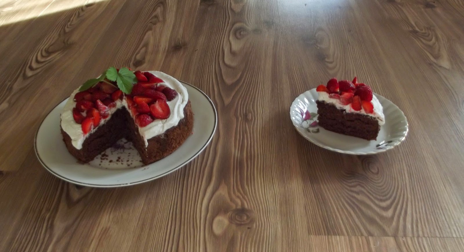 Wczoraj wieczorem upiekłam przepyszne ciasto ( prawie biszkopt) z bitym mleczkiem kokosowym i truskawkami, a rano zrobiłam zdjęcia o wschodzie słońca ( około dwóch godzin po nim). Wyszło pyszne, smakowało nawet mojemu tacie, który nie przepada za ciastami biszkoptowymi.