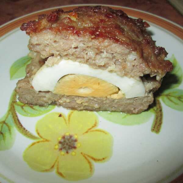 Obiad nie musi być nudny- czasem zwykłe kotlety mielone można łatwo zastąpić innym, ciekawszym i bardzo smacznym mięsnym daniem. U mnie dziś pieczeń z jajkiem.Składniki:½ kg mięsa mielonego wieprzowego½ kg mięsa mielonego wołowego3 jajka5 ząbków czosnk...
