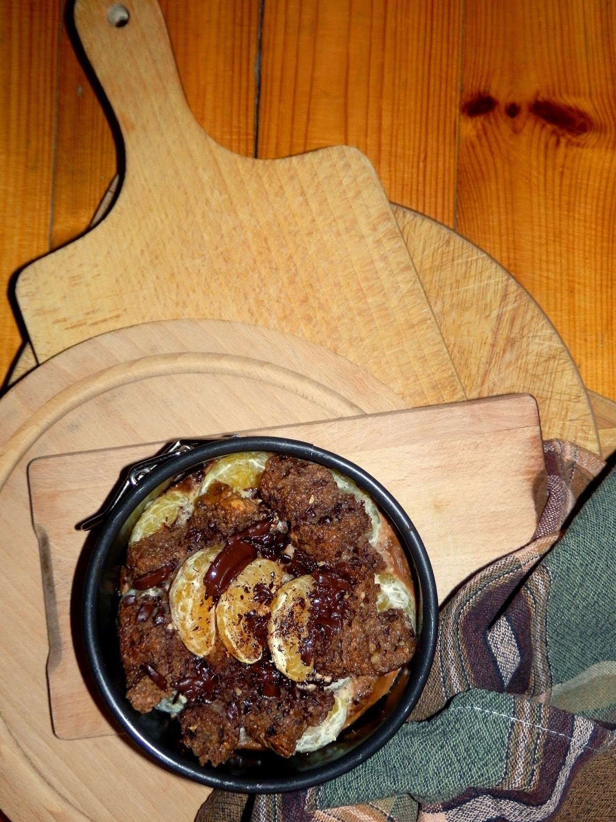 | Kakaowy pudding z chleb żytniego z mandarynkami i gorzką czekoladą |