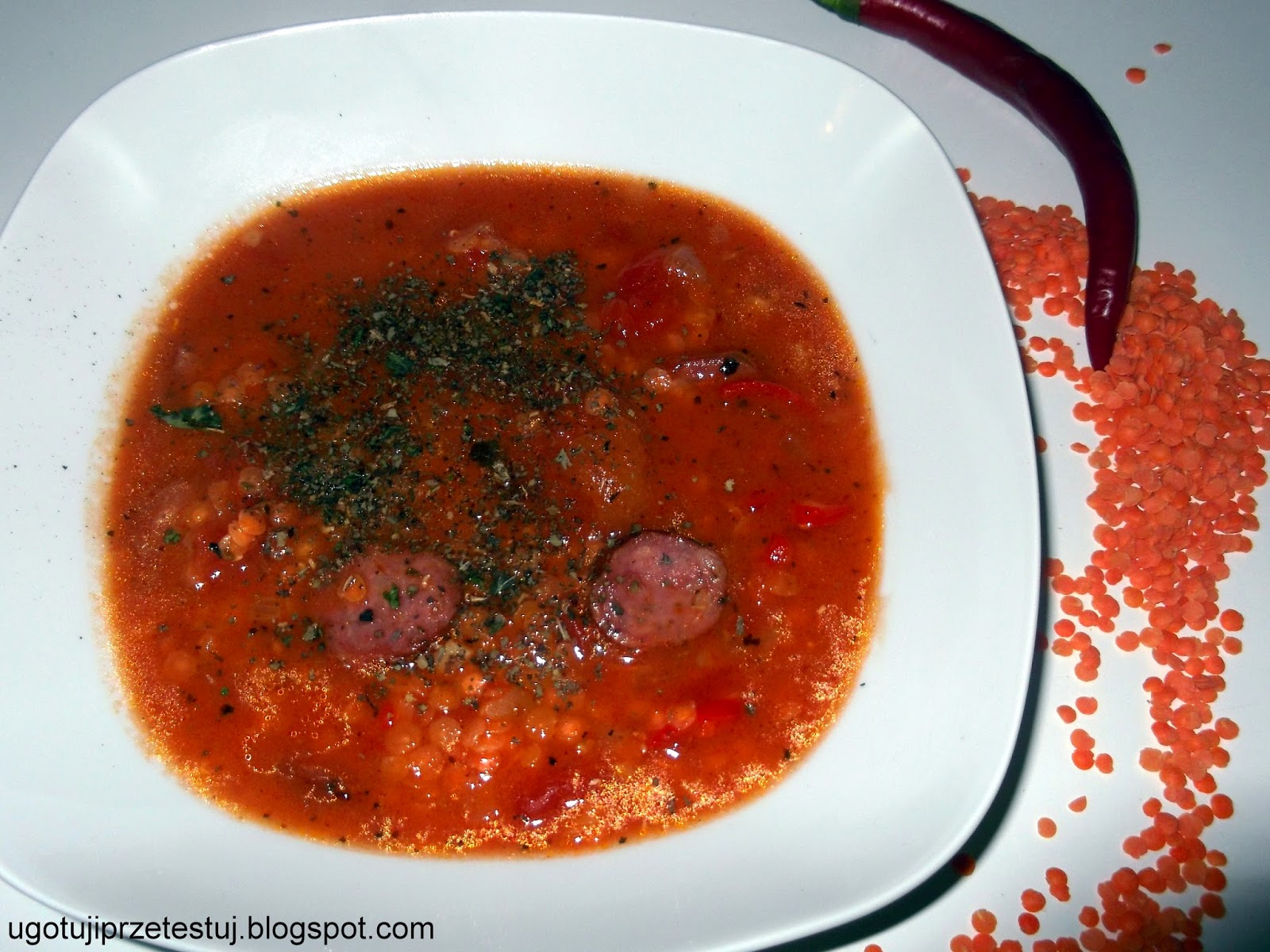 Zupa z czerwoną soczewicą i pikantną kiełbasą - mocno rozgrzewająca