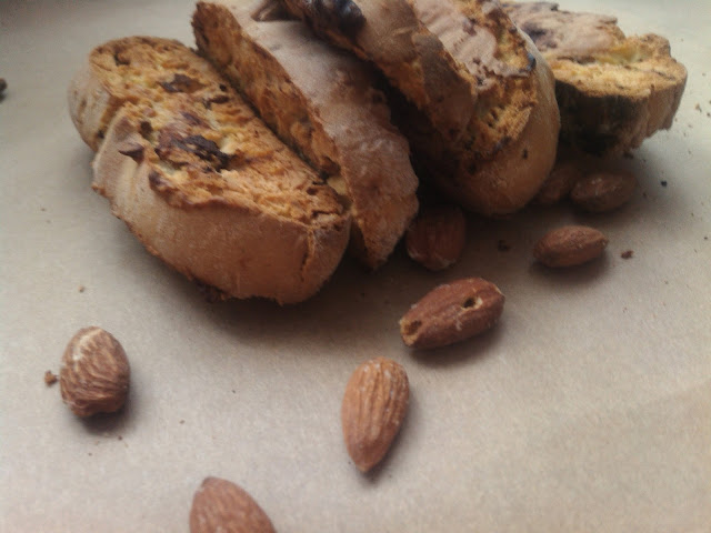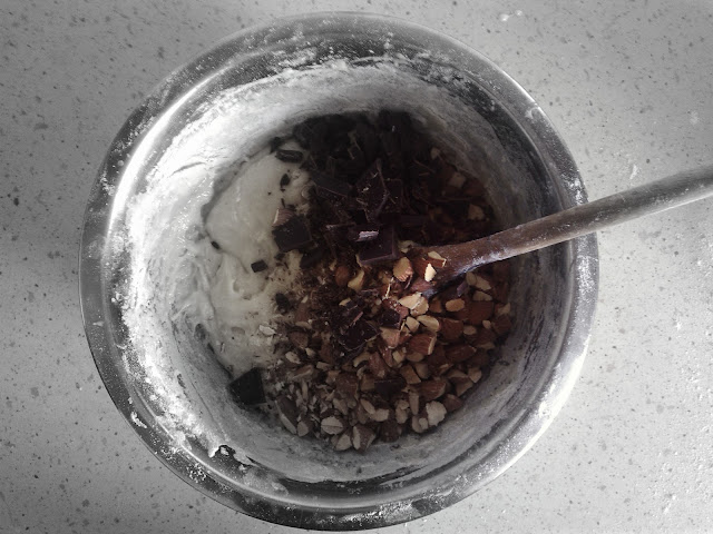 Migdały uprażyć, posiekać i dodać do ciasta.