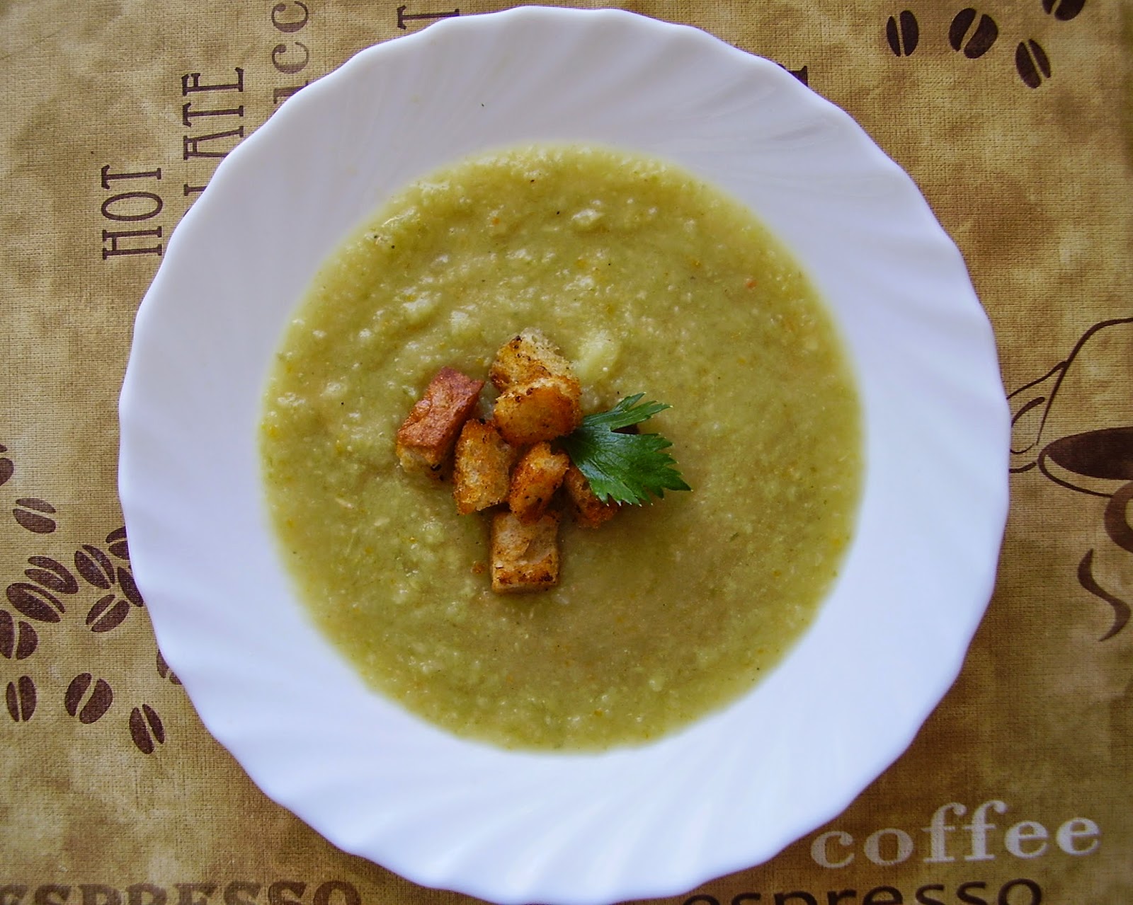 Ugotowane w bulionie warzywa zmiksować. Doprawić solą, pieprzem, gałką muszkatołową, papryką słodką.