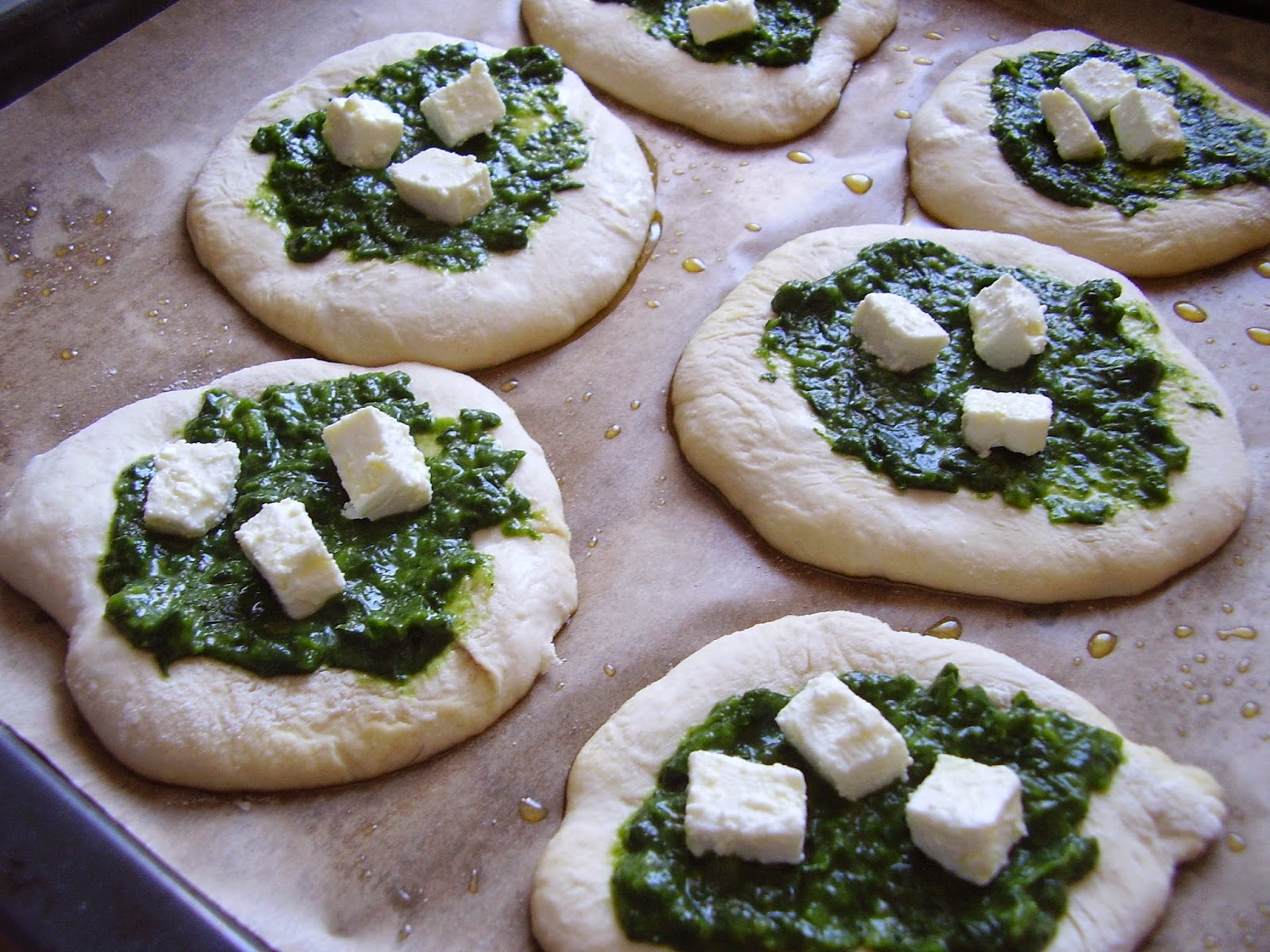 Ciasto podzielić na ok. 18 części, z których uformować placki i ułożyć na blaszce. Odstawić na 10 minut.