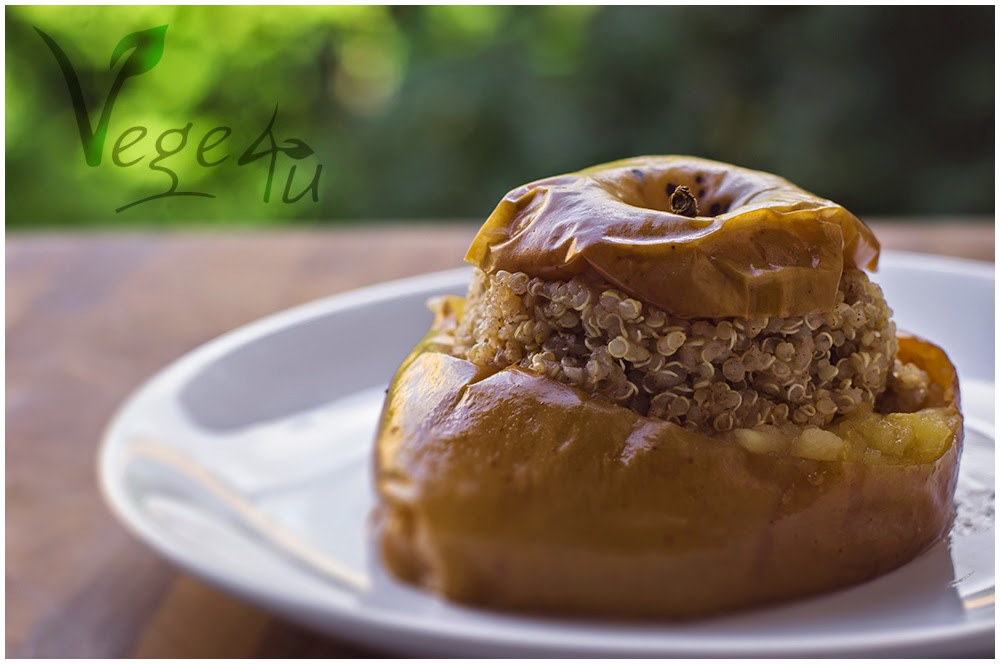 Upieczone jabłka faszerujemy komosą i przykrywamy górną częścią. Podajemy gorące. Nic prostszego! ;)