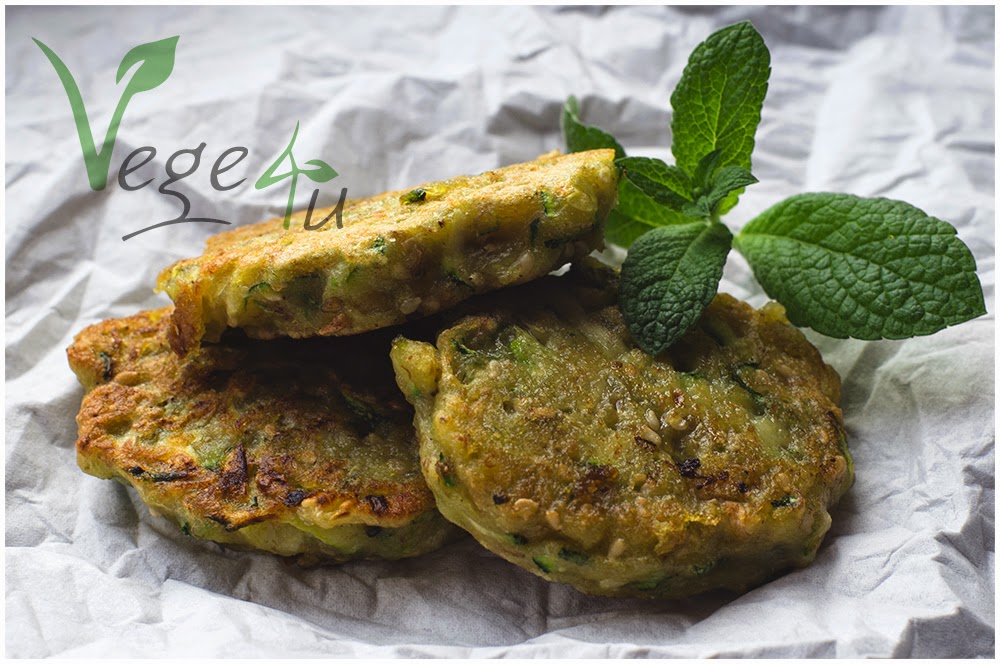 SPOSÓB PRZYGOTOWANIA:Cukinię należy umyć i zetrzeć ze skórką na tarce o grubych oczkach. Następnie delikatnie ją solimy i odstawiamy na bok. W tym czasie blendujemy banana. Odciskamy nieco cukinię i dodajemy do niej zmiksowanego banana. Dorzucamy sezam, otręby, kaszę manną oraz mąkę pszenną. Nie zapominamy o liściach mięty! Doprawiamy do smaku curry i chili cayenne. Wszystko dokładnie mieszamy. Przygotowaną masę nakładamy łychą na rozgrzany olej i smażymy z obu stron :)