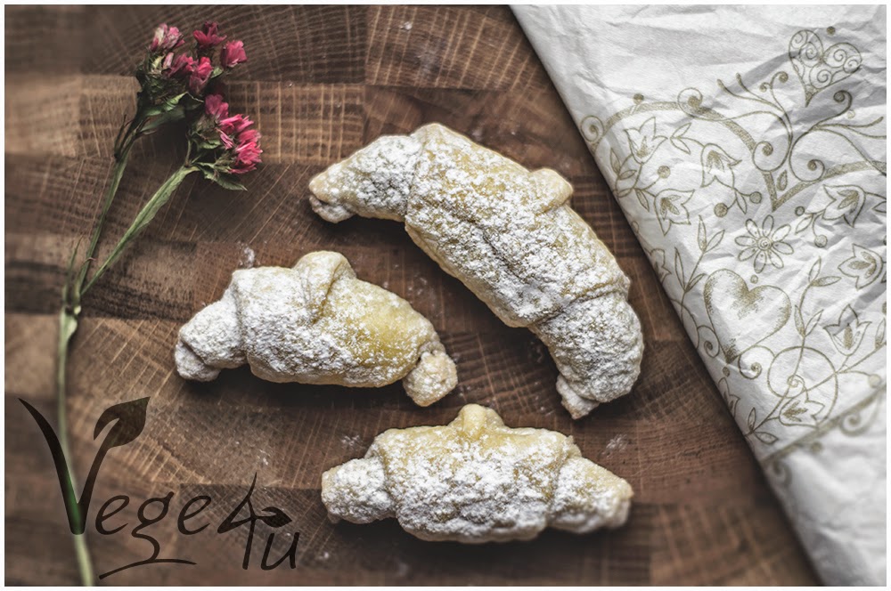 Przepis, pochodzący z przekazu ustnego od kilku osób, okazał się idealnym rozwiązaniem jako alternatywa ogólnodostępnych słodyczy. Miałam dwie godziny do momentu ugoszczenia mojej przyjaciółki i wyrobiłam się na styk :) Zapach unosił się w całym mieszkaniu i wygrywał znajomą nutę na naszych kubkach smakowych. Jak zapewne się domyślacie, świeżo wyciągnięte z piekarnika rogaliki znikały z talerza bardzo szybko! ...taki łasuch z tej mojej przyjaciółki, co by nie wspominać już o mnie samej ;)