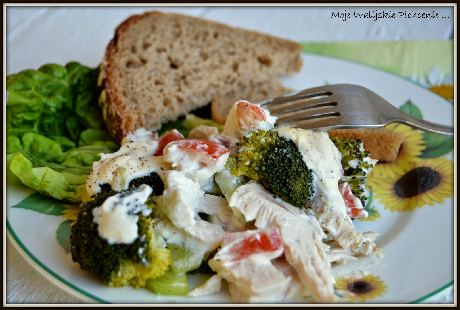 Gotowany kurczak, brokuły i sos czosnkowy to na prawdę zgrany duet. Smaki komponuję się tu idealnie przynajmniej dla moich kubków smakowych. Taką sałatkę można dodatkowo wzbogacić np. jajkiem, kukurydzą, selerem naciowym czy podprażonymi ziarnami słonecznika.