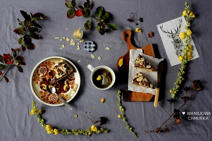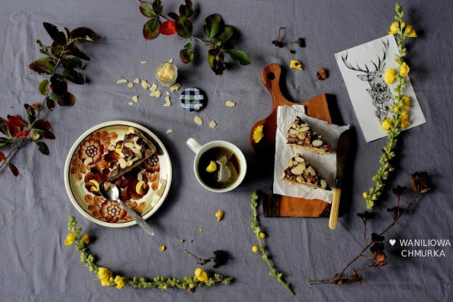 Natury jednak nie da się oszukać, na drzewach zaczynają żółknąć liście, a ranki pomimo, że słoneczne są mgliste i rześkie.Wszystko to nastroiło mnie do upieczenia ciacha opierającego się głównie na orzechach.