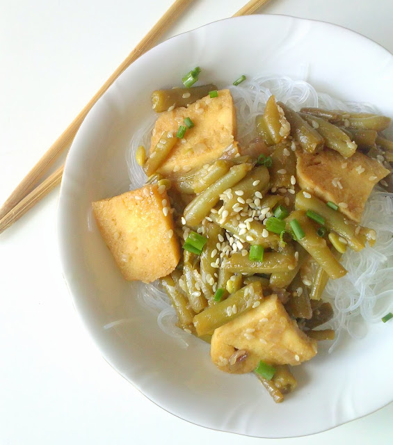 Pomysł na obiad dla tych, którzy lubią dalekowschodnie smaki bez wydawania fortuny na składniki - azjatyckie danie z tofu i fasolką szparagową.
