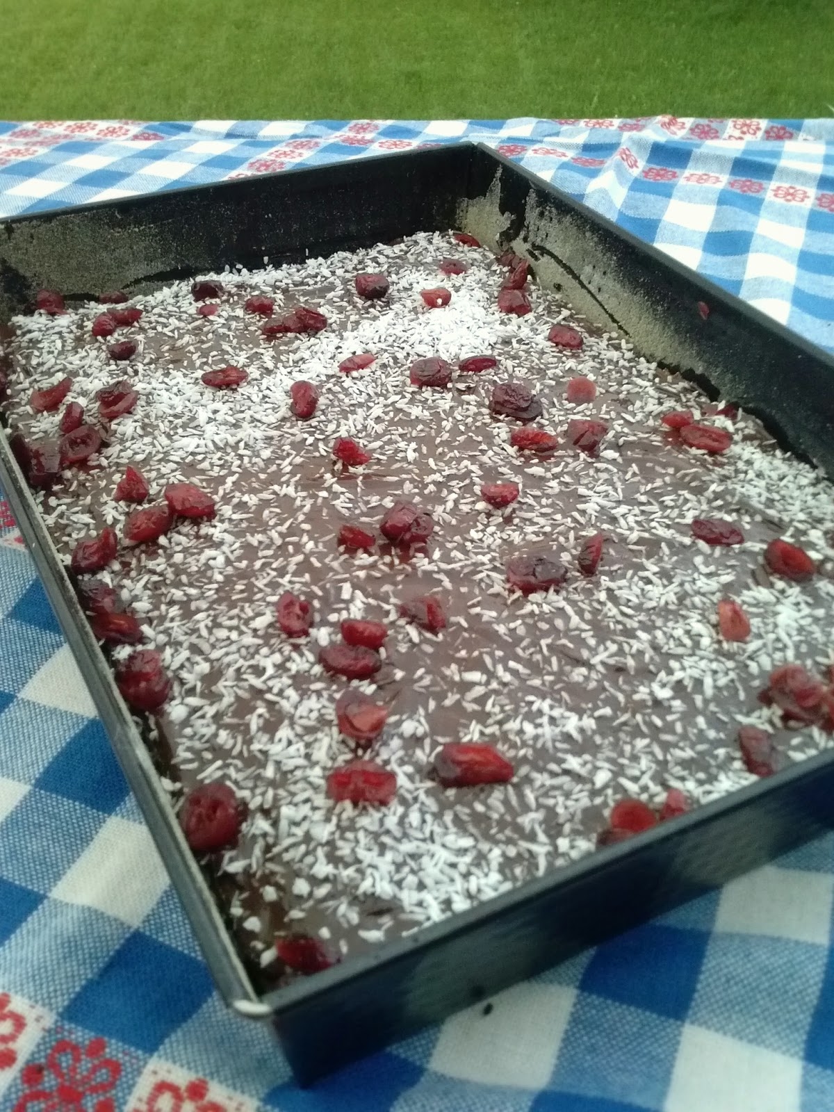 Ozdobić np. wiórkami kokosowymi i odłożoną wcześniej żurawiną.