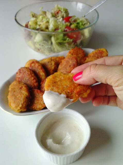 I takie oto nuggetsy maczane w keczupie, a najlepiej w mocno czosnkowym sosie na bazie sojonezu to już naprawdę są niemożliwie pyszne :)