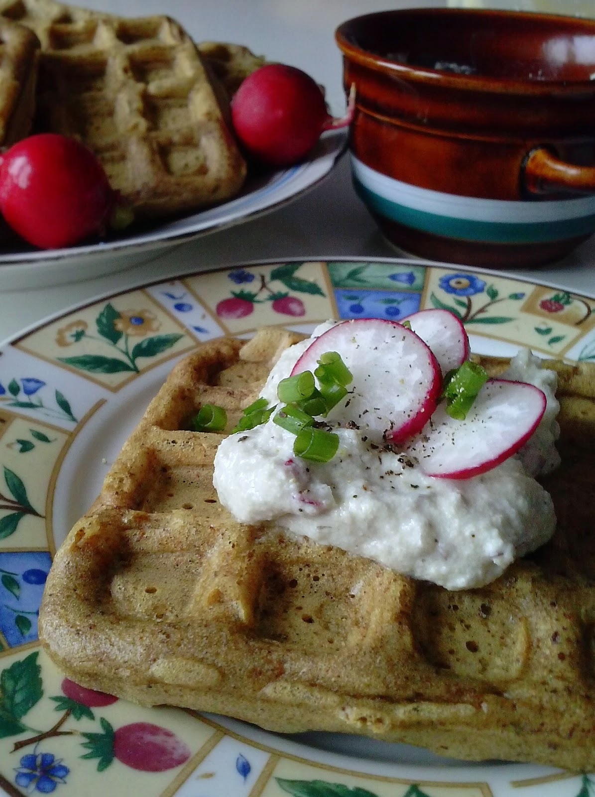 W sumie nic wielkiego, ale gofry, jak naleśniki, przeważnie wcina się na słodko, waniliowo i dżemowo. A tu sól, pieprz, cebula, szczypior i rzodkiewki...