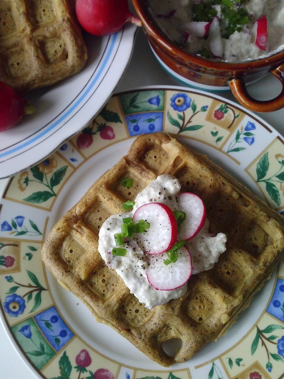 W sumie nic wielkiego, ale gofry, jak naleśniki, przeważnie wcina się na słodko, waniliowo i dżemowo. A tu sól, pieprz, cebula, szczypior i rzodkiewki...
