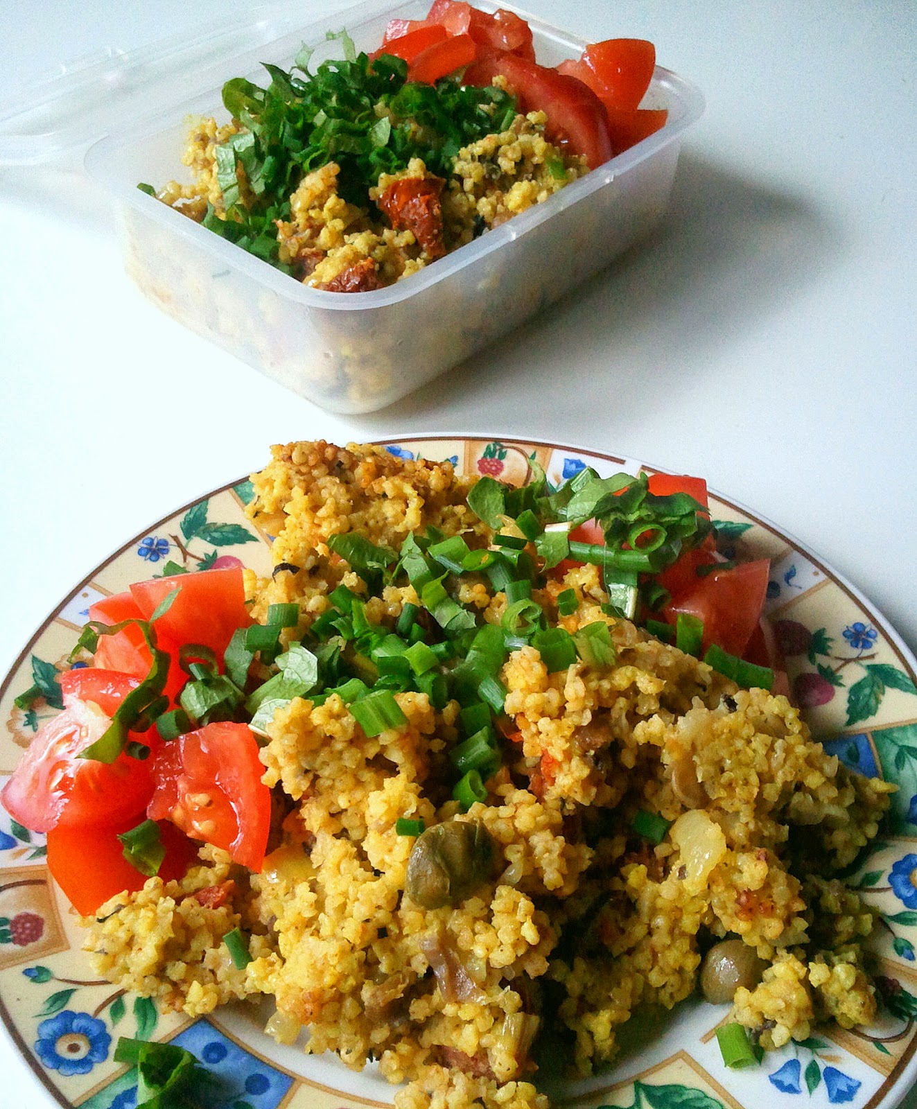 Jeśli zabrakło Wam tofu do porannej tofucznicy, przeszukajcie spiżarnię - z pewnością w na dnie jakiegoś słoika znajdzie się odrobina kaszy jaglanej do przygotowania dzisiejszego śniadania. Jaglanica to danie bardzo aromatyczne, konkretne i nie tylko poranne - ja zabrałam też porcję do pracy i zjadłam z surówką na obiad. Prawdę mówiąc przygotowałam jej zbyt wiele, bo okazuje się, że już niewielką porcją można się porządnie najeść.