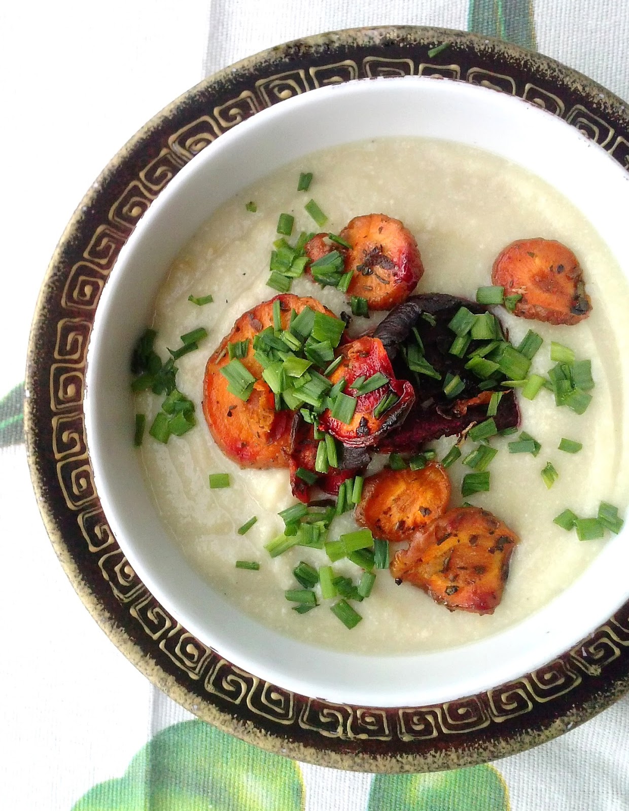 Zupę przełożyć do miseczki, na wierzchu położyć kilka plasterków pieczonych warzyw. Ozdobić drobno pokrojonym szczypiorkiem - fajnie podkręca smak.