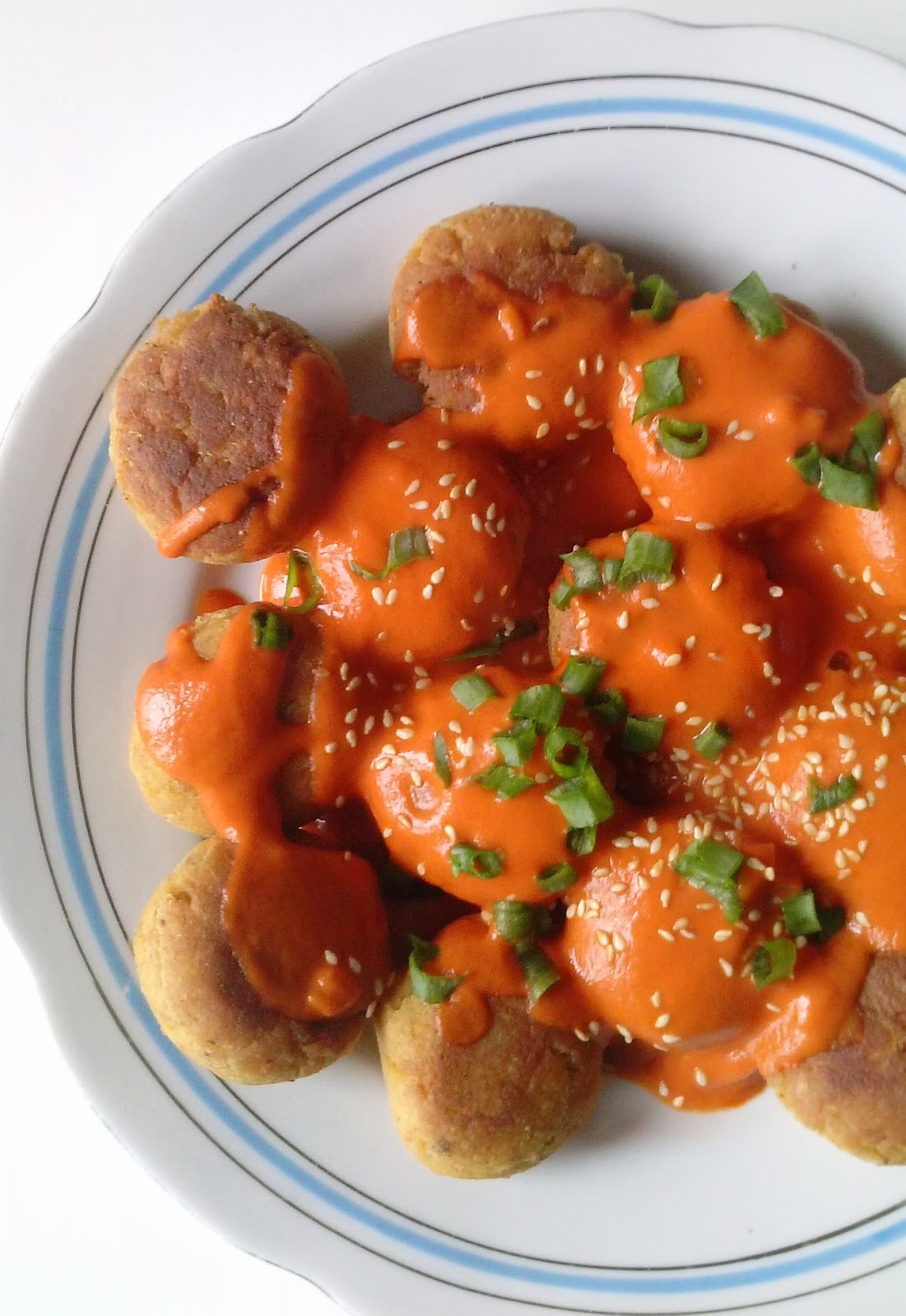 Podawać z koftami - można posypać krojonym szczypiorem i prażonym sezamem i drobno pokrojonym szczypiorem.