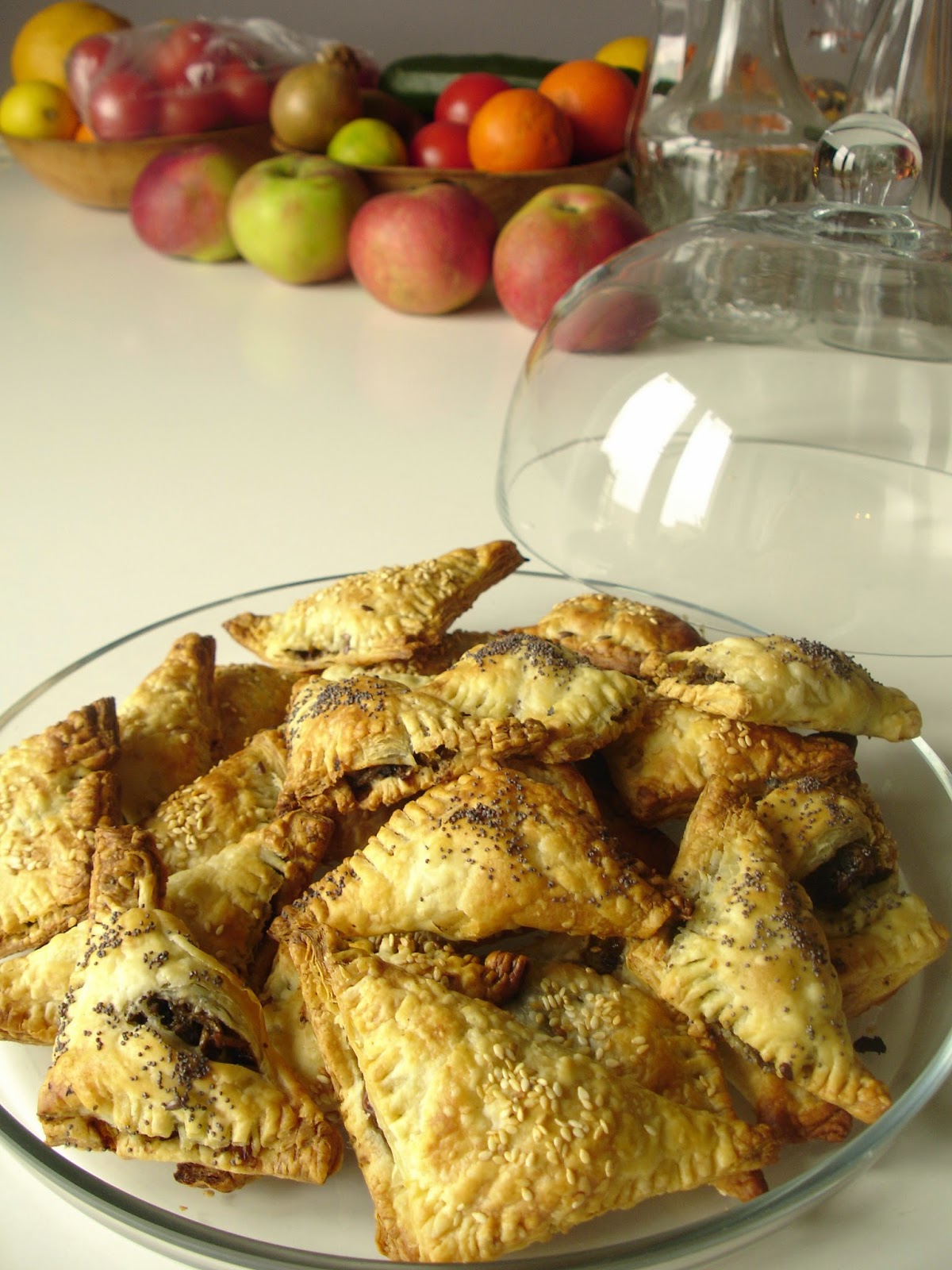 niedzielnym pokazie gotowania zostało mi sporo cebuli i soczewicy, oraz trochę pieczarek. Szkoda było to zmarnować. W lodówce łypały na mnie dwa opakowania ciasta francuskiego. Tyle dobra - paszteciki okazały się idealnym rozwiązaniem.