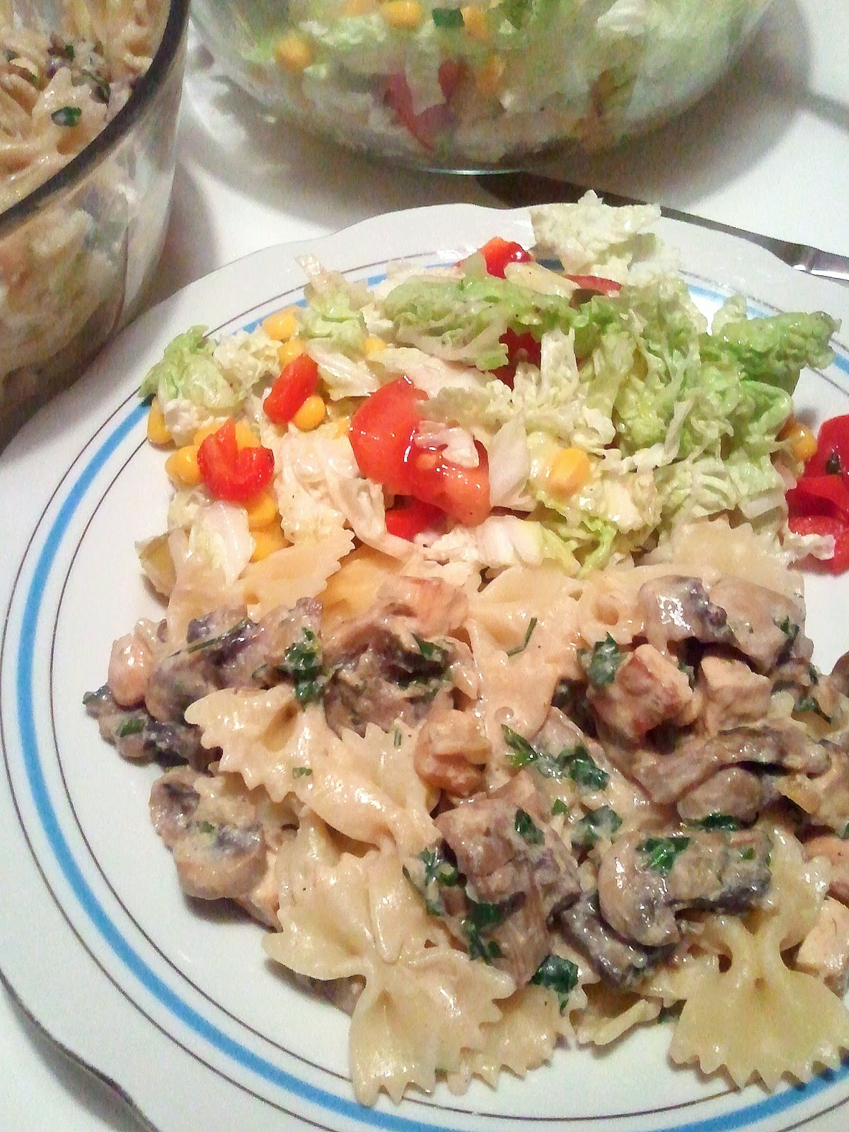 Sos pieczarkowo-śmietanowy:-1/2 kg pieczarek pokrojonych w półplasterki