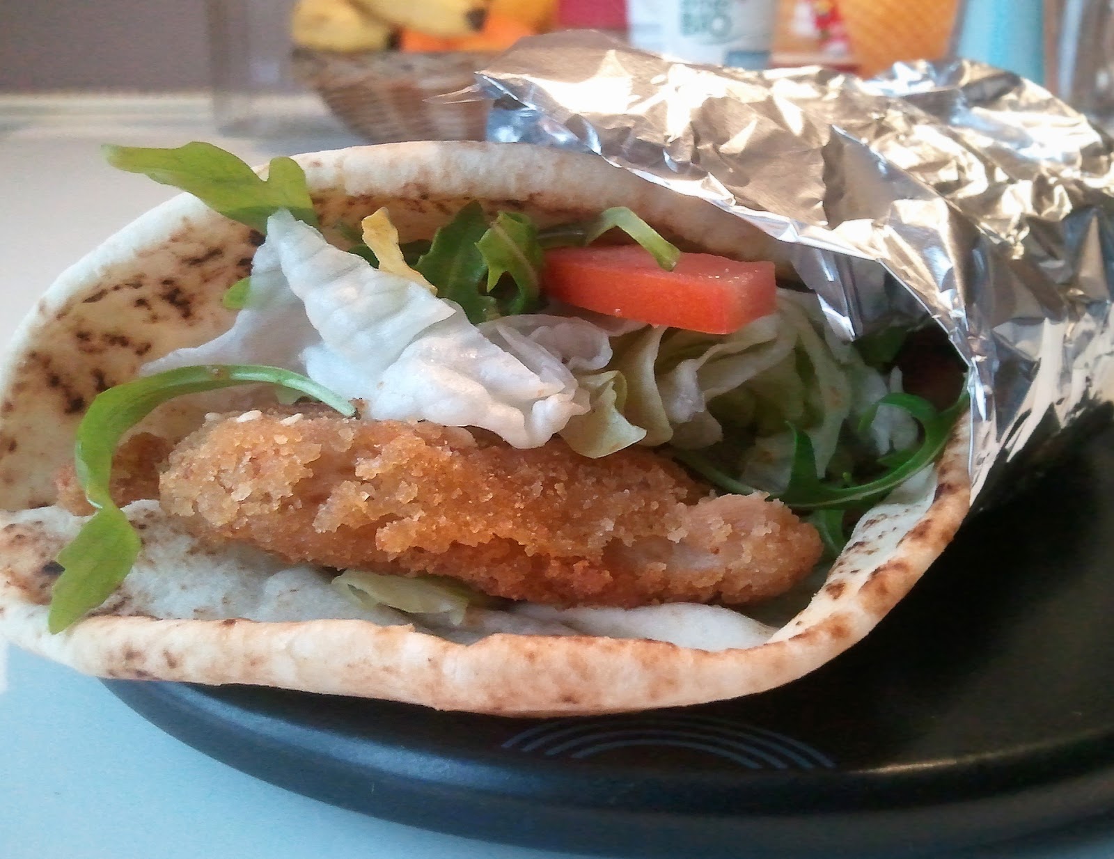 Na połowie placka ułożyć kotlety, przykryć warzywami i drugą połową placka***, zawinąć w alufolię.