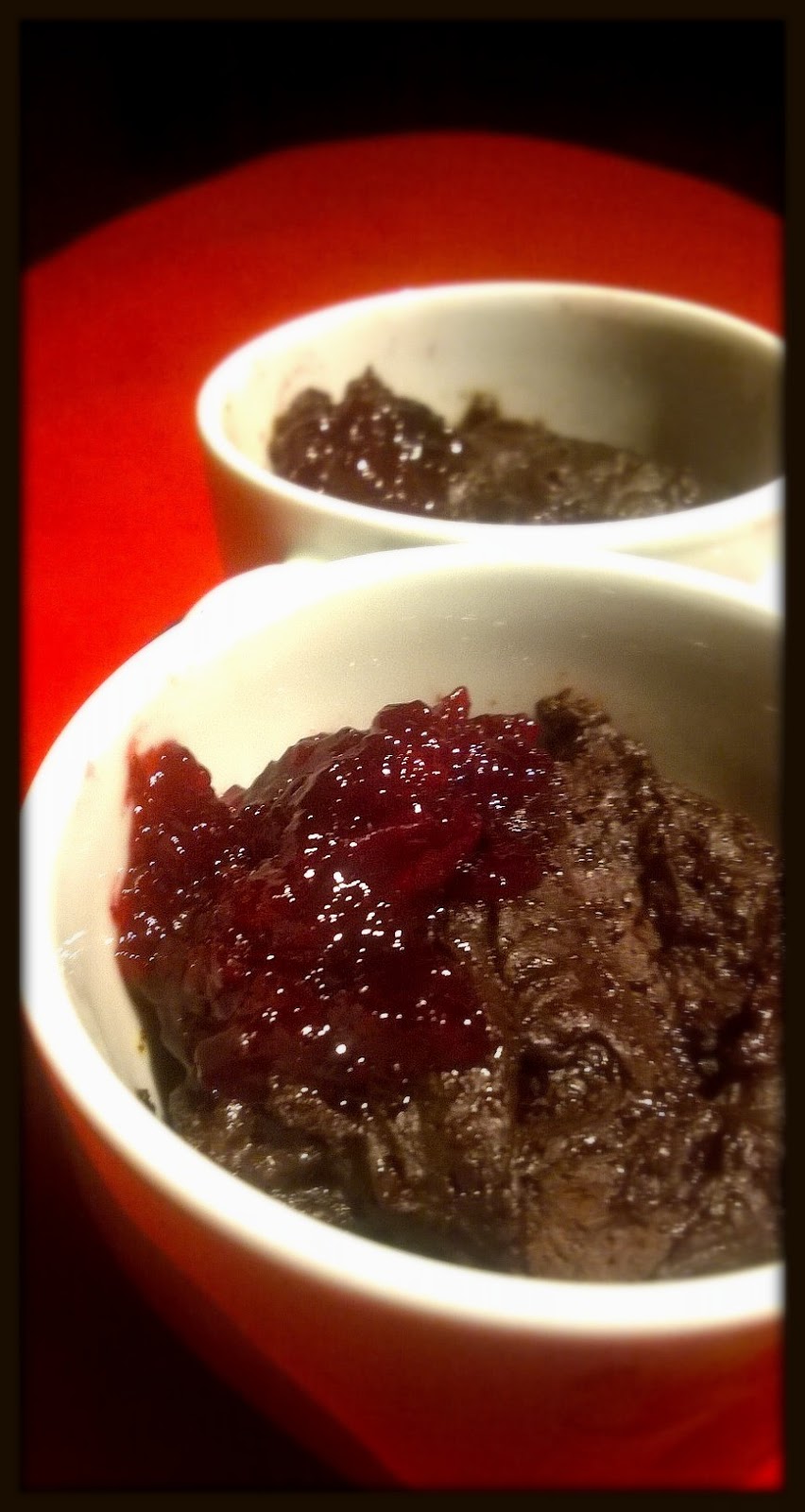 pochodzi z bloga erVegan.Ilu kucharzy, tyle wersji dania. Moje modyfikacje wynikły z konieczności. Pierwszą wersję zrobiłam z mąki pszennej 650. Ciasto wyszło bardzo smaczne, ale po upieczeniu niezwykle zbite i gęste. A spodziewałam się puszystości i lekkości. Kolejna próba była zatem z użyciem mąki gryczanej (erVegan użył pełnoziarnistej, a to była jedyna wersja mąki z pełnego ziarna, jaką posiadałam) i dosłownie odrobinki (na czubek uchwytu łyżeczki) proszku do pieczenia. Mleka też nieco więcej. Końcowy efekt wyszedł zachwycający. Dżem wiśniowy wieńczy dzieło.