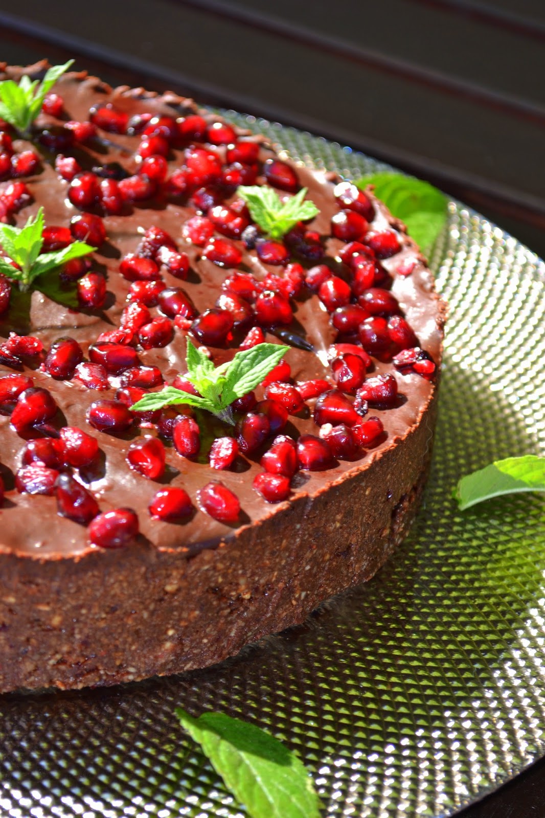 Całość ląduje na godzinę do zamrażarki i gotowe. Na wierzchu znalazła się czekolada i granat z miętą. Można spokojnie zastosować inne owoce, ale polecam te o kwaskowym smaku dla kontrastu ze słodkim ciastem.