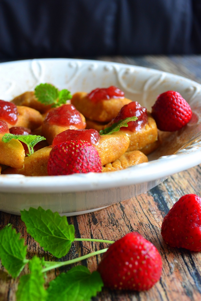 Idealne są z kwaskowym dżemem. Ja swoje zjadłem z truskawkowym, ale idealny też jest porzeczkowy czy z pomarańczy.