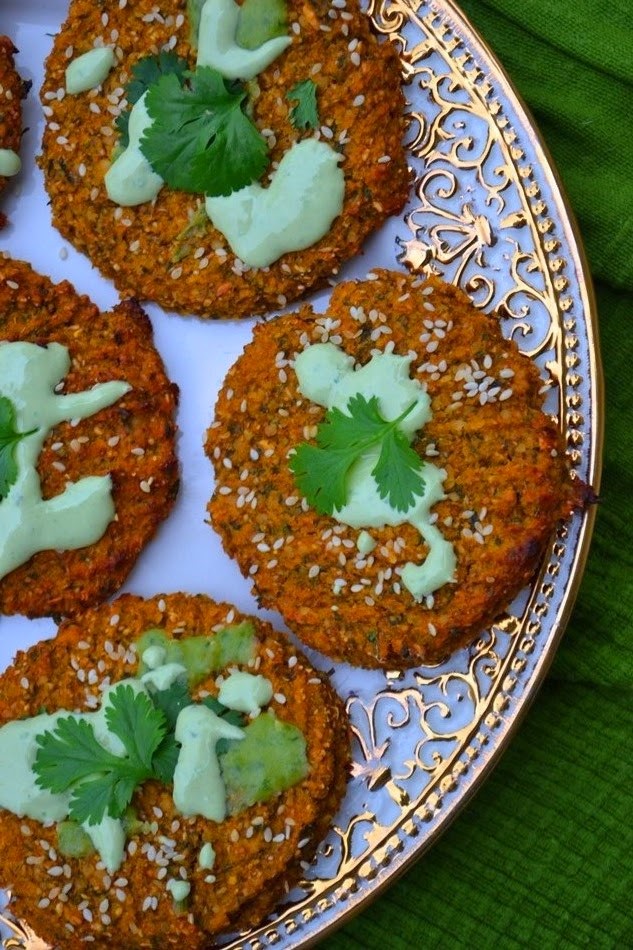 BURGERY Z BATATÓW, POLENTY I KONOPI Z BAZYLIOWYM SOSEM TAHINI