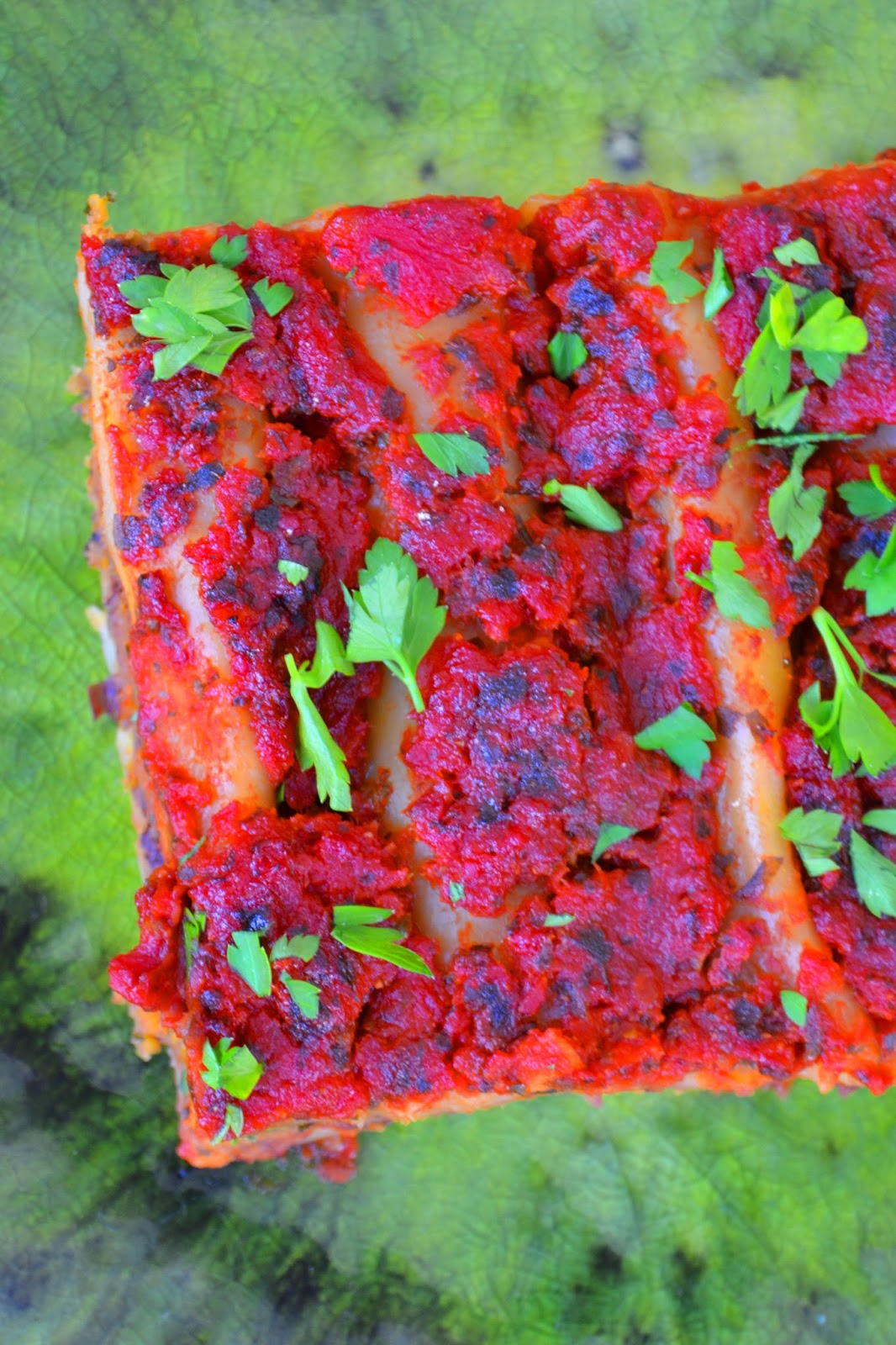 CANNELLONI Z BATATEM, CZERWONĄ FASOLĄ I CYTRYNOWYM PESTO Z POKRZYWY