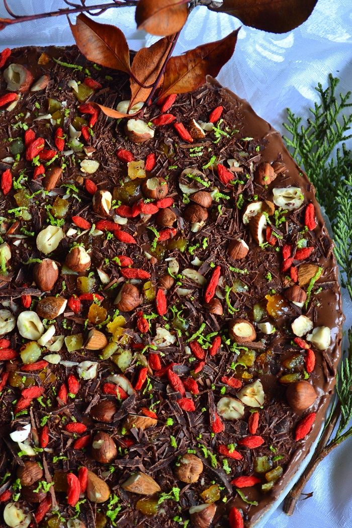Obowiązkowo czekolada w formie gotowej lub przygotowana własnoręcznie (kakao lub karob z olejem kokosowym). Do tego dodatki smakowe i tzw. Składniki nadające kształt.