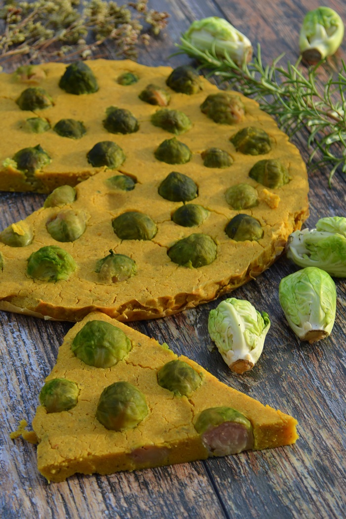 Dodatek świeżych, jasnozielonych brukselek, dał fajną w smaku i wyglądzie tartę. To pomysł na inne wykorzystanie tych warzyw, niż klasycznie z bułą.
