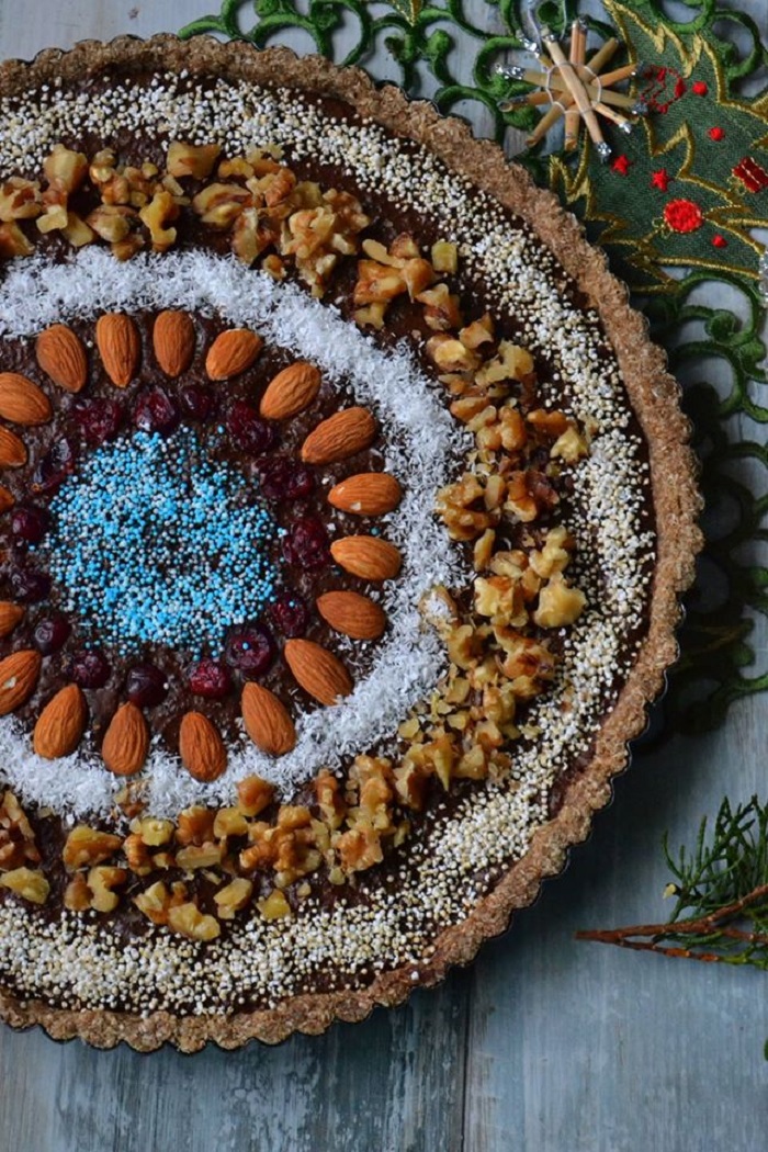 Spody do ciast niepieczonych często tart robi się ze zmielonych ziaren słonecznika, wirków kokosowych, orzechów i czegoś, co sklei te sypkie składniki.