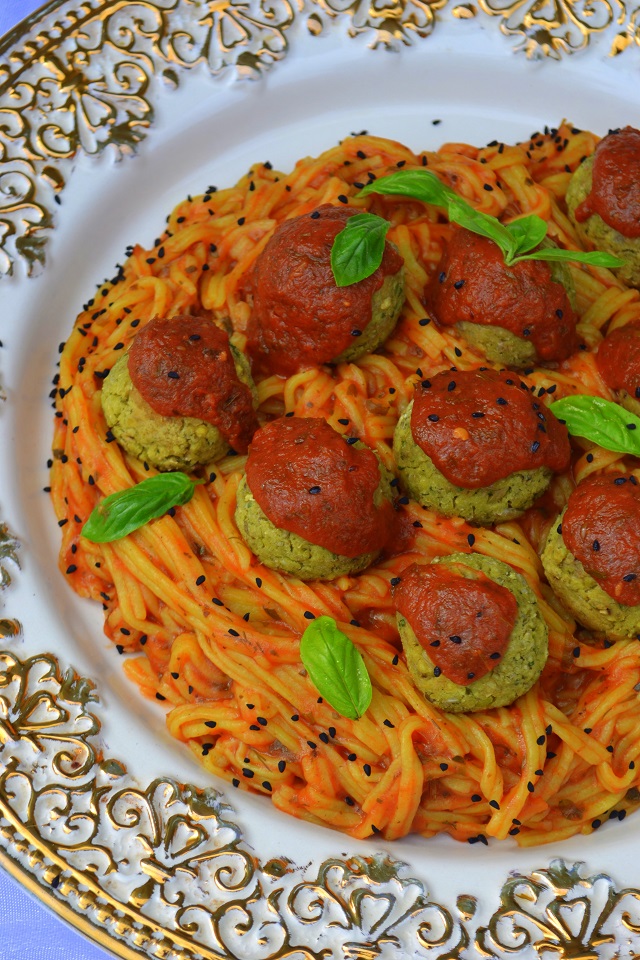 KLOPSIKI Z BOBU I KASZY JAGLANEJ Z AROMATYCZNYM SOSEM POMIDOROWYM