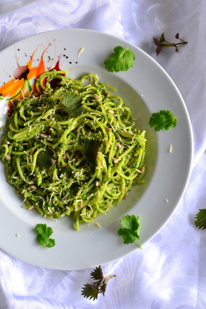 - makaron ugotować w wodzie, odcedzić i wymieszać z pesto. Można posypać wegańskim parmezanem