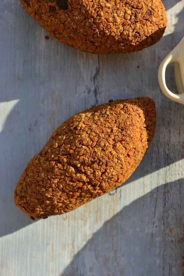 I tak. Mąkę pszenną zastąpiłem zmielonym słonecznikiem. Jajko, czerwoną fasolą. Ser żółty pominąłem.