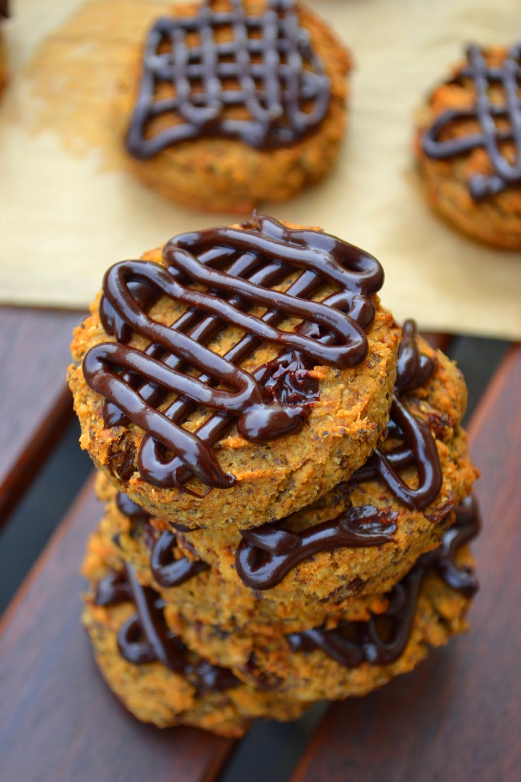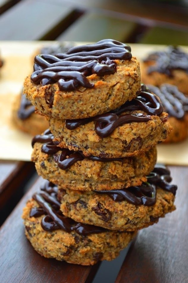 W swoich dokonaniach kulinarnych przerobiłem już tony różnych ciastek ale te chyba biją na głowę czas przygotowania i składniki. Są idealne gdy brak jest czasu a mamy ochotę na coś słodkiego do przegryzienia. Nie pakujemy do środka żadnych tłuszczy, jajek a mąką jaka występuje to kukurydziana więc ciacha są bezglutenowe.Jakie są składniki? Wiórki kokosowe, banany, mak, mąka kukurydziana, rodzynki i żurawiny, orzechy włoskie i syrop dowolnie jaki do posłodzenia. Wystarczy wszystko wymieszać w misce i upiec i gotowe. Na wierzchu wylądowała czekolada z dodatkiem cynamonu.Do popołudniowego mleka z orzechów laskowych są idealne, tak jak i na piknik :-)SKŁADNIKI: