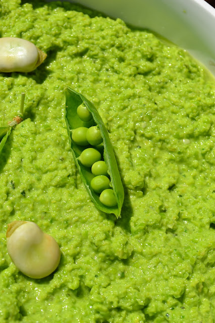 Crostini z pastą z bobu, zielonego groszku i ricotty