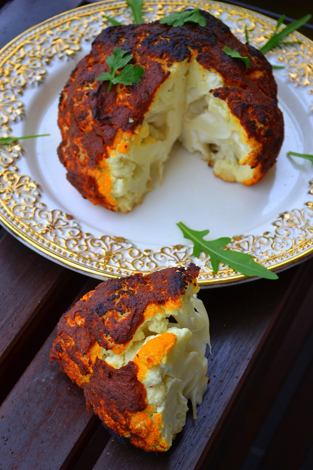 Pierwsza próba okazała się strzałem w 10. Kalafior pieczony był w całości by zachować ładny kształt i chrupkość.