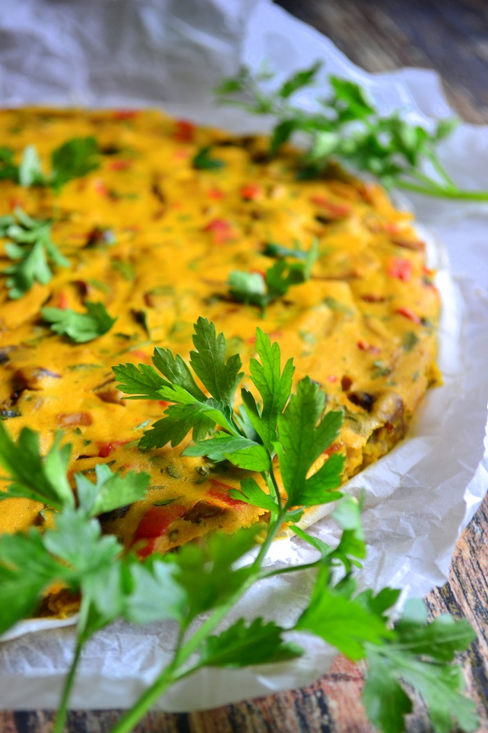 Co do tego. W zasadzie pełna dowolność. Co kto lubi. Ja dodałem cebulę, grzyby, dymkę i czerwoną paprykę. Można dodać ziemniaki, szpinak itd.